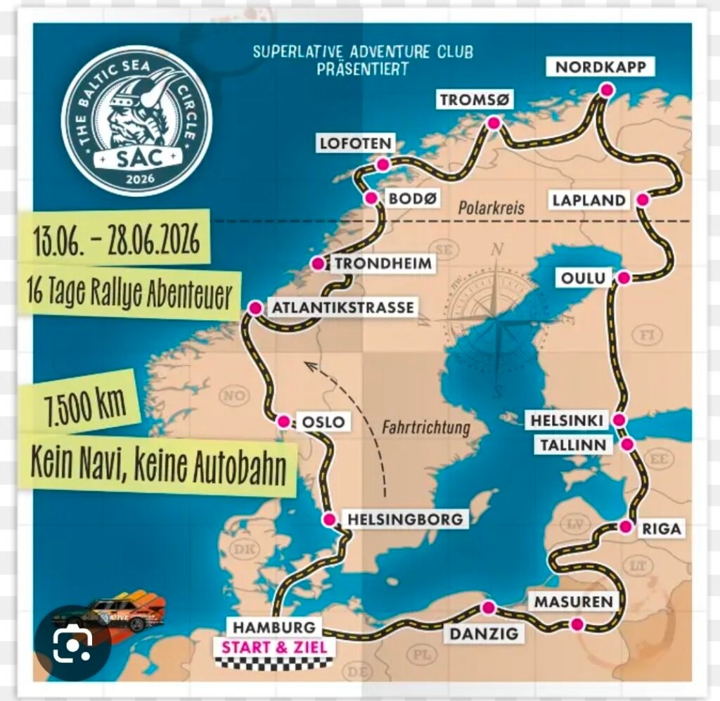 Zu unserer Mitgliederversammlung am Fr. 27. März um 19.30 Uhr haben wir Mathies Holsteiner und Niels Frener eingeladen. Die beiden werden nach dem Essen und den Regularien einen Reisebericht über ihre Baltic Sea Circle Rallye 2025 halten. Unter dem Motto „Von Pellworm bis ans Polarmeer“: zwei Insulaner, ein Auto, 7500 Kilometer. In 16 Tagen durch 10 Länder um die Ostsee – ohne GPS und Autobahn und für einen guten Zweck! Wir freuen uns auf einen tollen Abenteuer- Bericht.